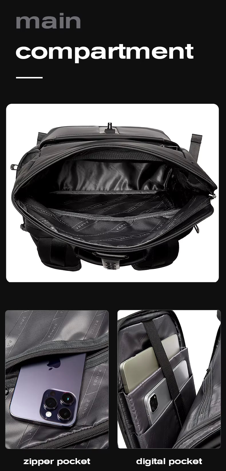 1️⃣ HIGH-DENSITY COATED OXFORD POLYESTER + WATERPROOF YKK ZIPPERS – FULLY WEATHER-SEALED – Every surface and every closure of the BANGE 2888 is engineered for maximum weather protection — high-density coated Oxford polyester resists rain, scratches, and daily abrasion while premium waterproof YKK zippers seal every compartment against moisture penetration. The gold standard in zipper technology combined with premium polyester construction means your laptop, iPad, and belongings stay completely dry and protected in any condition.
