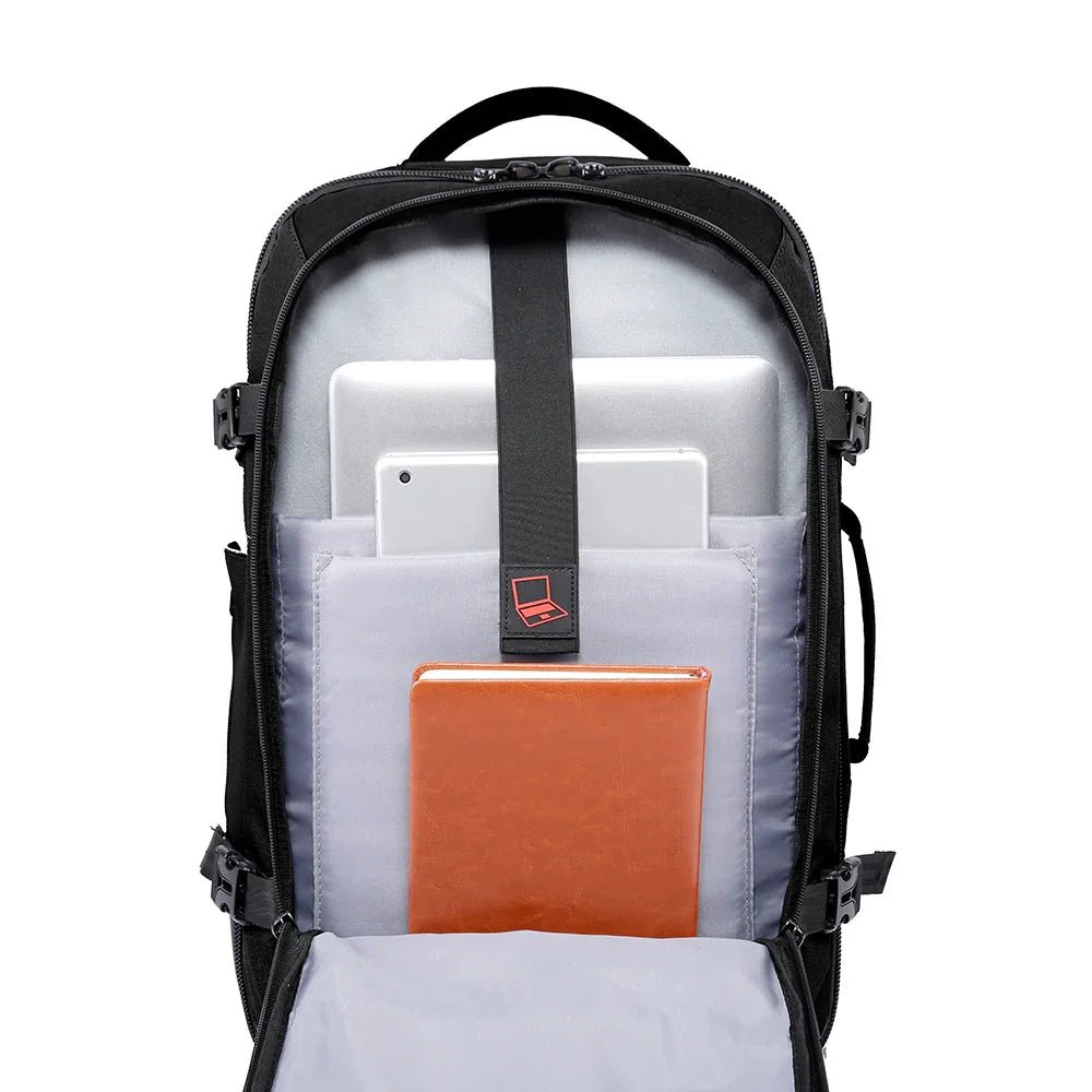 It contains three-module main compartment which is full of space for storing stuff. The largest among the mesh-covered modules can store several sets of clothes, while the second is ideal for toiletries, earbuds, and spare batteries. With a capacity ideal for weekend trip, flying, and daily commute, the backpack suits your needs.