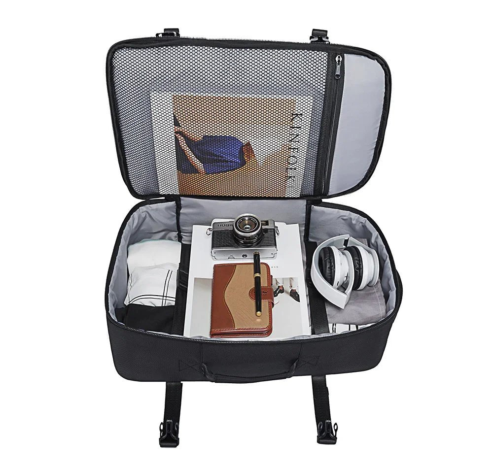 - Tri-Modular Storage System – Large primary compartment with mesh-enclosed spaces for clothing, toiletries, and accessories.