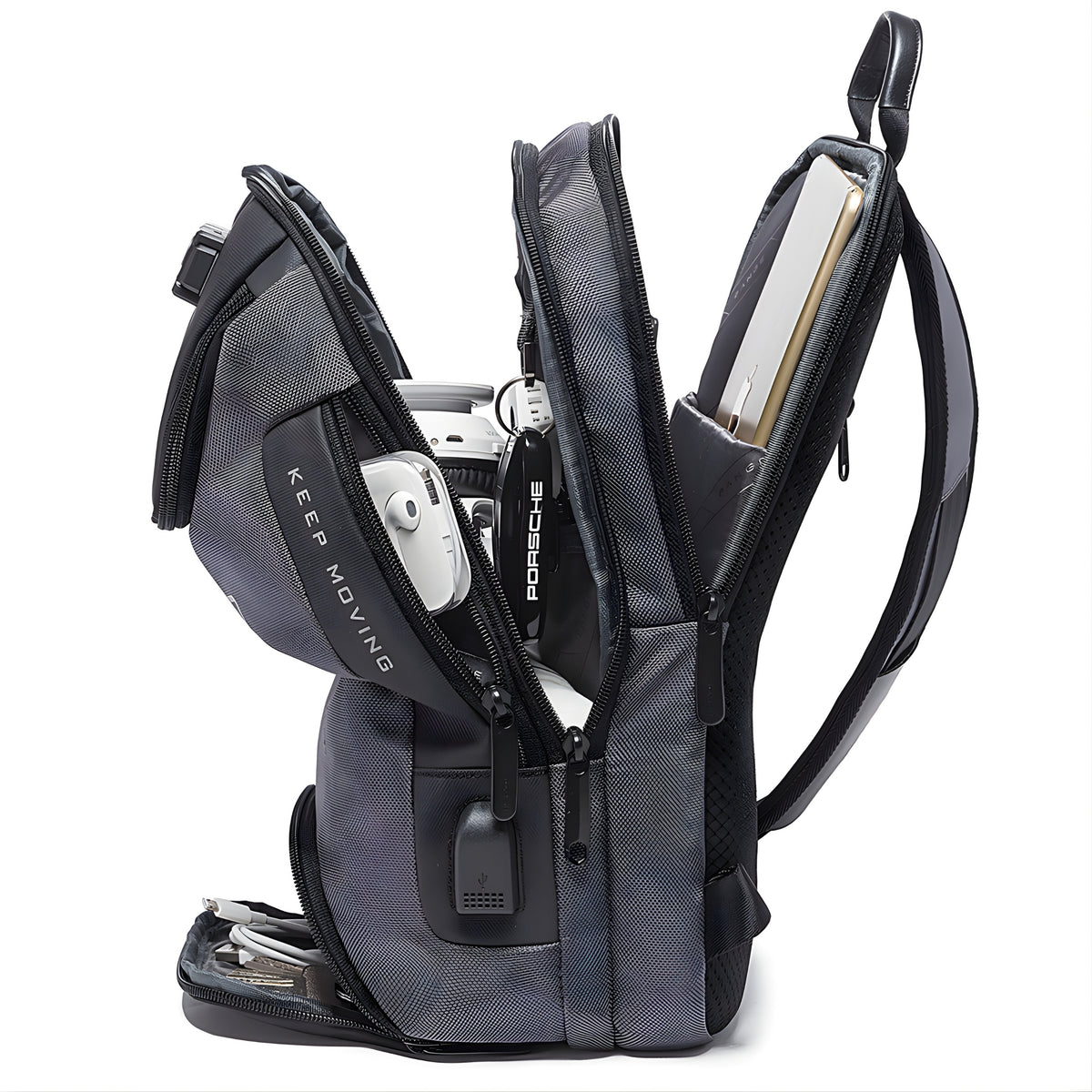 3️⃣ BUILT-IN USB CHARGING PORT – POWER YOUR DEVICES ON THE GO – The integrated USB charging port connects to your power bank inside the bag for external device charging without ever opening the main compartment. Stay fully powered through long travel days, outdoor expeditions, business meetings, and extended daily commutes.