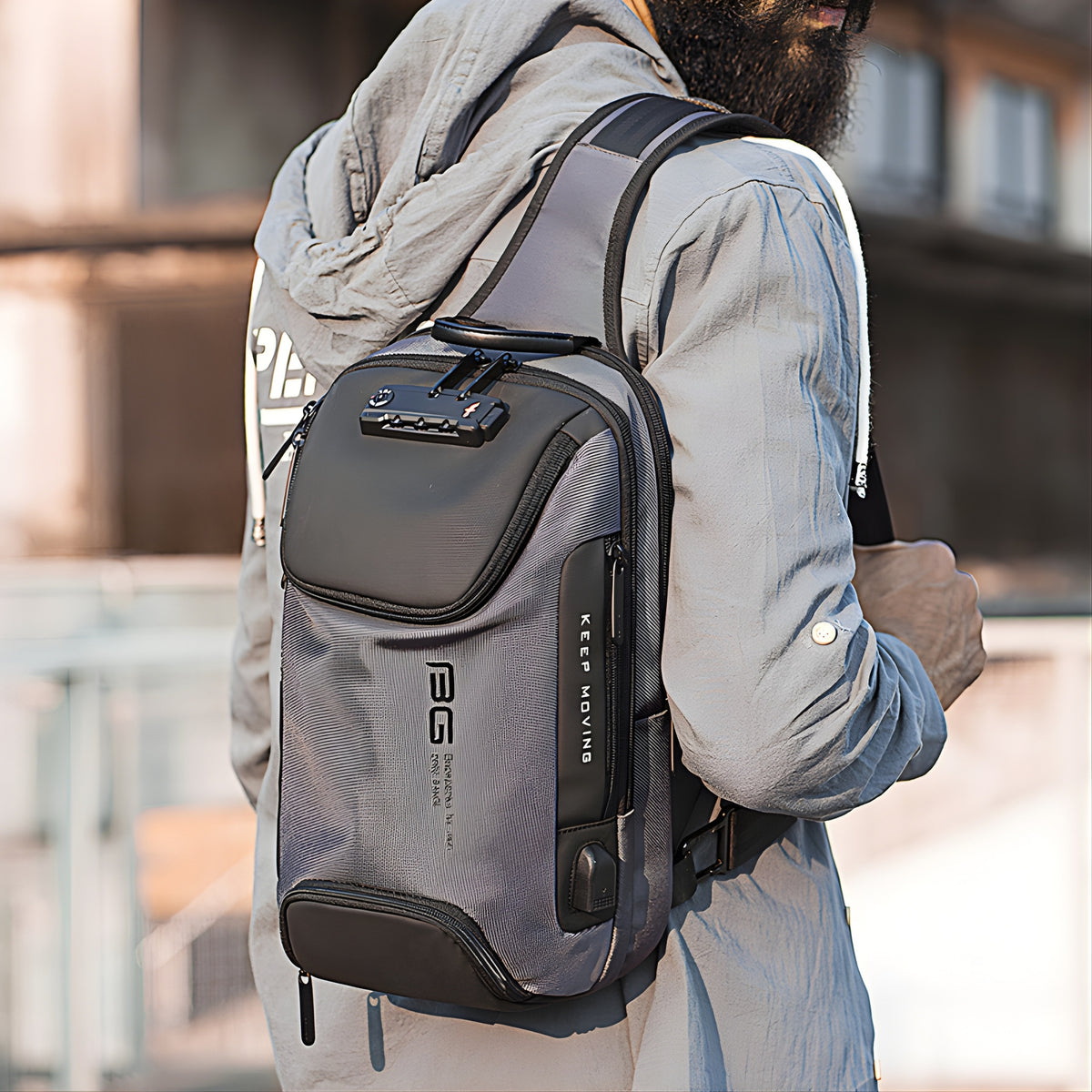 BANGE 7082 Waterproof Anti-Cut Sling Bag – 900D USB Large Capacity Crossbody Chest Shoulder Bag for Men Outdoor Travel & Business