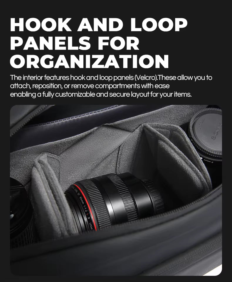 5️⃣ SMOOTH ZIPPER CLOSURE – FAST & SECURE GEAR ACCESS – The smooth zipper closure system delivers quick, reliable, snag-free access to your camera gear and accessories whenever the perfect shot presents itself. Secure enough to protect your gear during active outdoor movement and travel, yet fast enough to open in seconds when inspiration strikes during street photography, nature shoots, and travel photography sessions.