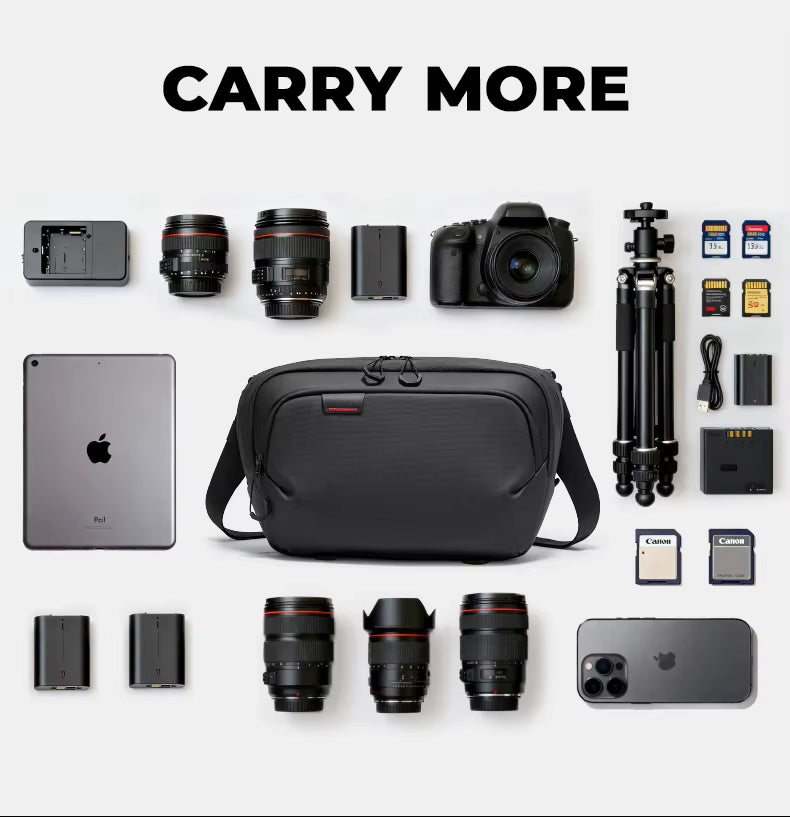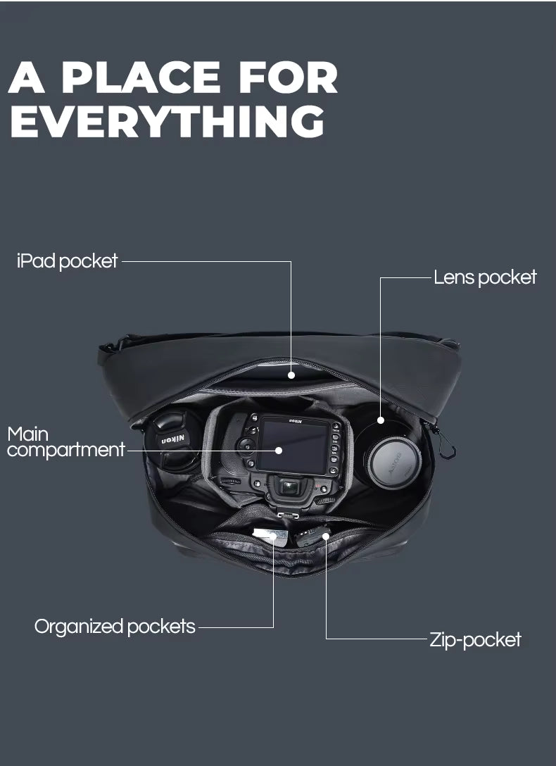 6️⃣ LIGHTWEIGHT 0.67KG | 12.9" TABLET COMPATIBLE | OUTDOOR & CASUAL TRAVEL – At just 0.67 kg, the BG-XJ329 adds virtually no extra weight to your existing photography gear load — critical for long outdoor shoots and travel days where every gram counts. Compatible with 12.9-inch tablets alongside full DSLR setups, this versatile multifunctional camera sling bag is the perfect all-season companion for outdoor travel photography, casual adventures, and everyday creative use.