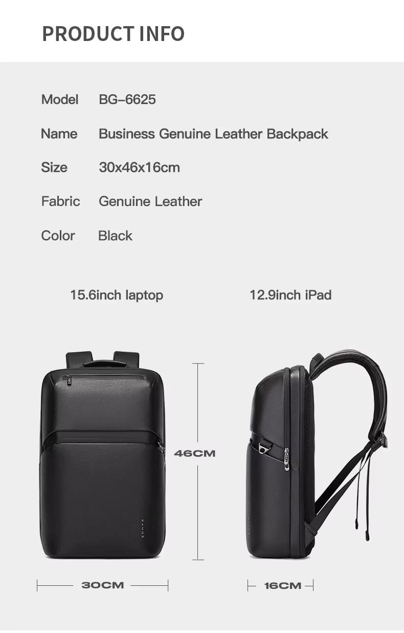 The BANGE 6625 Leather Laptop Backpack is where timeless elegance meets modern everyday functionality — a premium leather backpack crafted for professionals, students, and travelers who refuse to choose between style and performance. Constructed from genuine premium leather with a water-resistant coating, this sophisticated 30 × 45 × 15 cm backpack delivers the durability, class, and refined aesthetic that sets it apart from ordinary nylon and polyester alternatives.