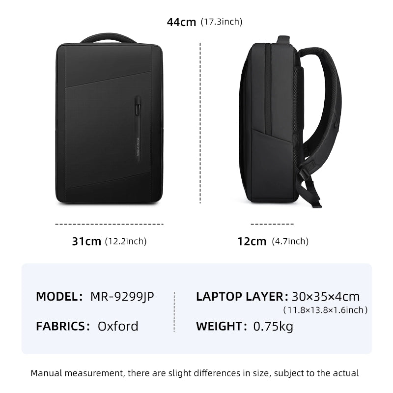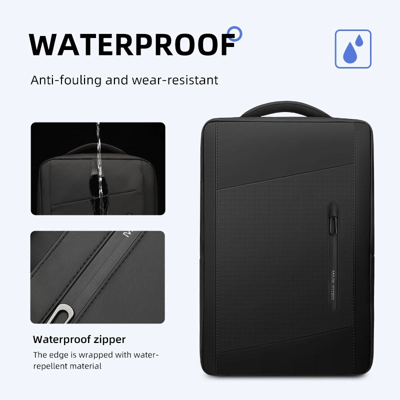 The Mark Ryden Infinity Medium Travel Backpack MR9299 is a modern city backpack designed for everyday use, commuting, and smart travel. Featuring a distinctive geometric design and crafted from high-tech waterproof vinyl, this backpack combines minimalist aesthetics with practical functionality.